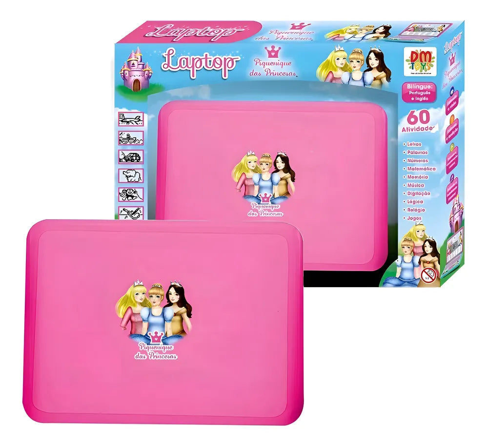 Laptop Princesas 60 Atividades Bilingue da DM Toys é um brinquedo educativo que proporciona aprendizado e diversão para crianças. Com 60 atividades em letras, palavras, números, matemática, memória, música, digitação, lógica, relógio e jogos, este laptop é uma ferramenta para incentivar o aprendizado de maneira lúdica e interativa.
