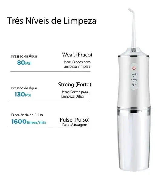 Lavador Bucal Portátil Jato Potente Bivolt Para Higiene Dental e Limpeza De Implantes
