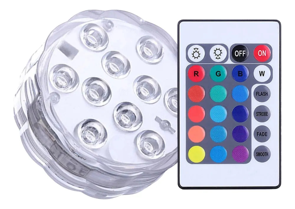 Nossas luzes submersíveis podem ser usadas dentro ou fora dágua. Ilumine vasos de flores, esculturas de gelo, configurações de mesa. foi especialmente desenvolvido para quem busca alto rendimento e baixo consumo de energia para a iluminação de sua piscina. Luzes submersíveis controladas remotamente fornecem luz constante e não piscam! proporciona momentos agradáveis com uma troca de efeitos fácil e rápida com apenas um toque. Permite também regular a potência dos refletores ou dimerizar para o dia que você desejar uma iluminação mais suave.