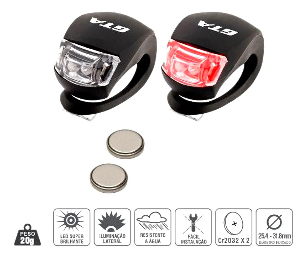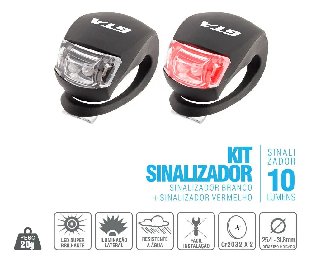 Kit sinalizador super bright de silicone com 1x led branco + 1 led vermelho na cor preto