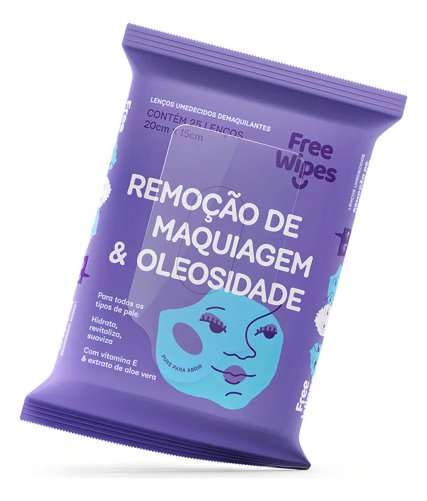 Lenço Umedecido Demaquilante Free Wipes - Remove Maquiagem, Controla Oleosidade, Hidrata e Suaviza a Pele - Contém Vitamina E e Aloe Vera, 25 Lenços - Ideal para Todos os Tipos de Pele