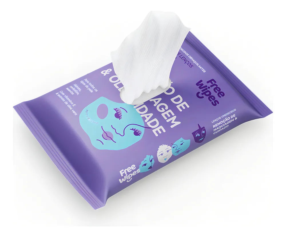Cada embalagem contém 25 lenços que proporcionam hidratação, suavidade e revitalização, graças à presença de vitamina E e extrato de aloe vera. Além disso, os Lenços Free Wipes são dermatologicamente testados, livres de álcool etílico, sendo seguros para todos os tipos de pele, inclusive as mais sensíveis.