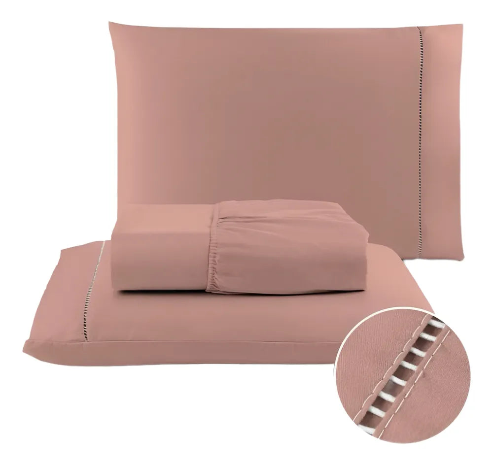 Rosê - JOGO DE LENÇOL CASAL PADRÃO PONTO PALITO PERCAL 200 FIOS POLIÉSTER 3 PEÇAS.