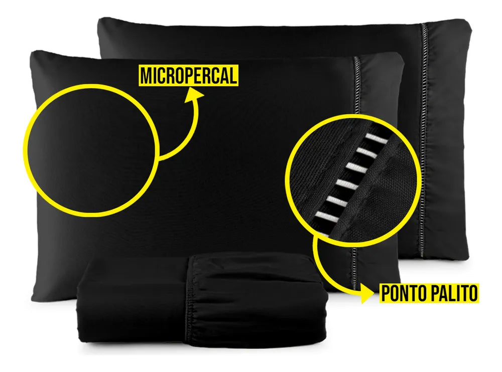 Não perca tempo e renove seu quarto com estilo! O Lençol Solteiro com Fronha Ponto Palito Texfine Macio C/ Elástico 2 Peças Preto é a escolha ideal para quem valoriza elegância e qualidade.