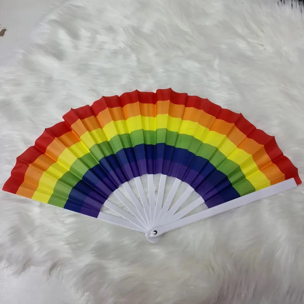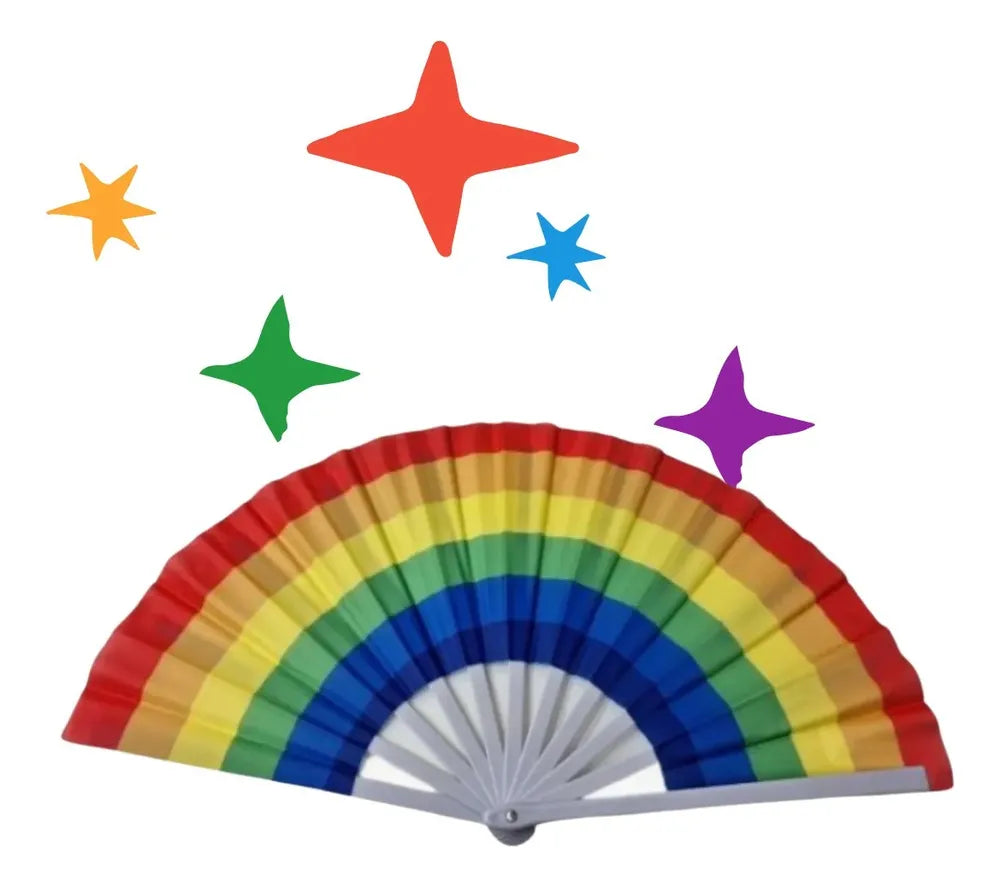 Leque Colorido Arco-Íris! Mais que um simples acessório, ele é um símbolo vibrante de diversidade, inclusão e empoderamento. Seu design moderno celebra o movimento LGBT+ QIA+, trazendo cores intensas que representam a liberdade e a união da comunidade. Seja para se refrescar ou para um look arrojado, o leque é ideal para expressar sua personalidade.