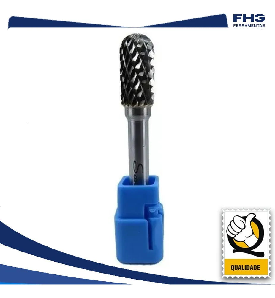 - 1 UNIDADE DE LIMA ROTATIVA CILÍNDRICA ABAULADA 10mm X 20 METAL DURO CORTE DUPLO HASTE 6,0MM