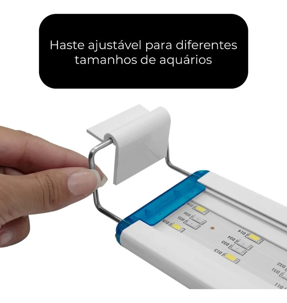 Luminária de LED para Aquário de 38cm medida total com extensores de 7cm em cada ponta da mesma totalizando 52cm!