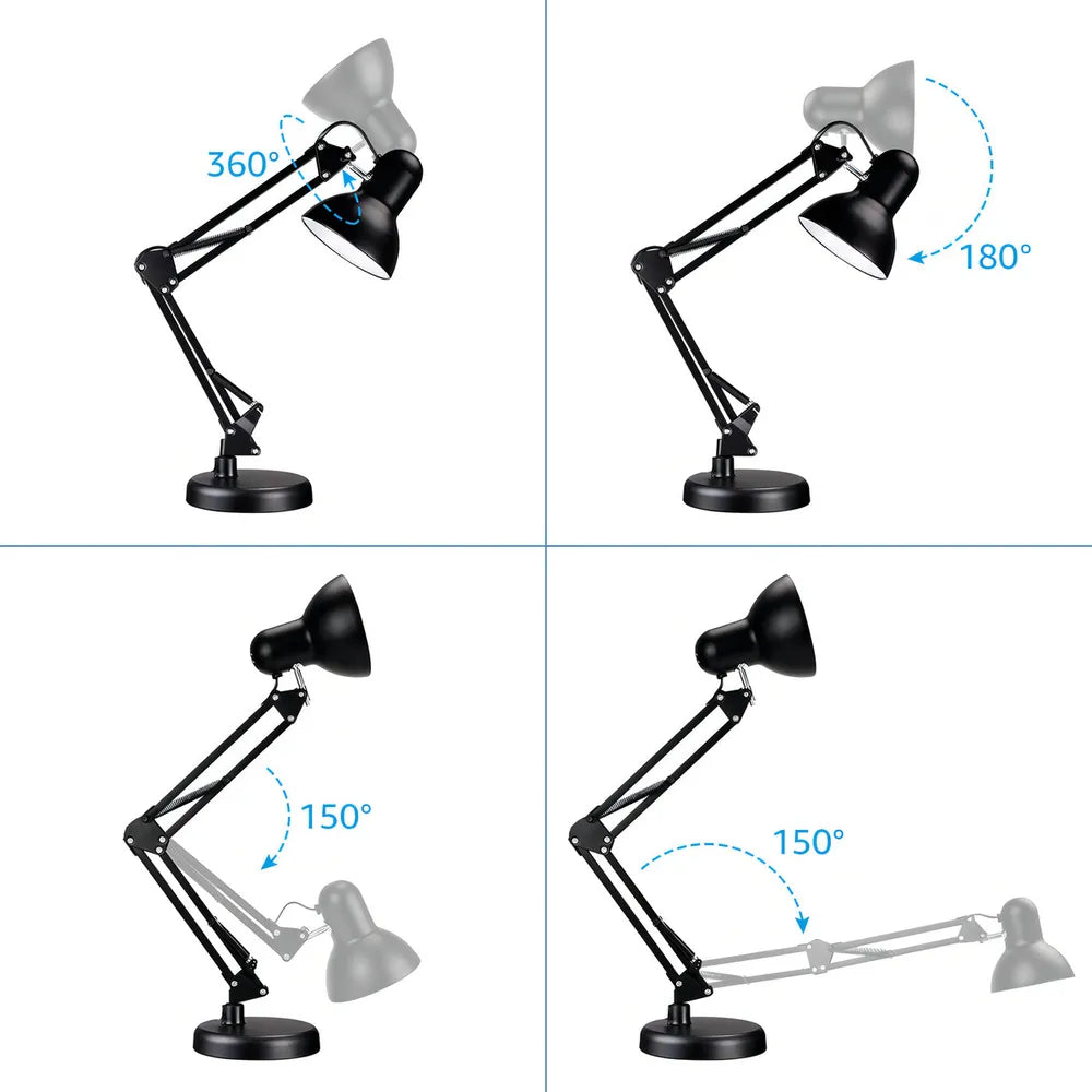 Com seu braço articulado, você pode ajustar a luminária para direcionar a luz conforme desejar, proporcionando conforto visual. Sua base ponderada garante estabilidade, permitindo que a luminária permaneça firme em qualquer posição.