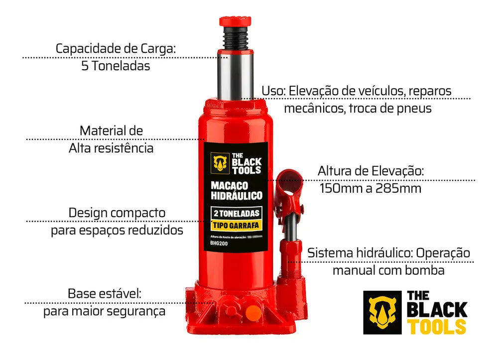 O Macaco Hidráulico Manual Tipo Garrafa é preparado para elevar cargas com peso de até 2 toneladas, desenvolvido em material de alta qualidade e resistência. É uma ferramenta indispensável para elevação de cargas, veículos e outros equipamentos.