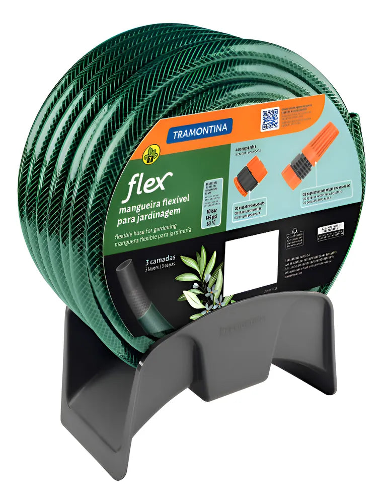 A Mangueira Flex para Jardim da Tramontina é ideal para quem busca qualidade. Ela é super flexível e de fácil manuseio, possui 20 metros de comprimento e é recomendada para situações de uso com pressão da água de até 10 bar [145 psi] e temperatura de 50 °C.