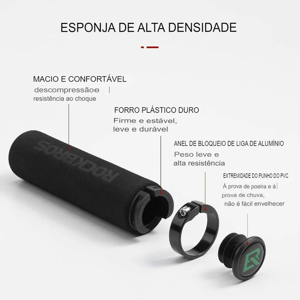 Tenha em mãos o conforto de uma manopla de excelente qualidade e durabilidade! A Rockbros utiliza tecnologia de ponta na elaboração de seus produtos. Com borracha anti derrapante e super confortável, as manoplas Rockbros irão deixar seus pedais muito mais prazerosos.