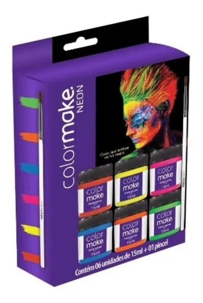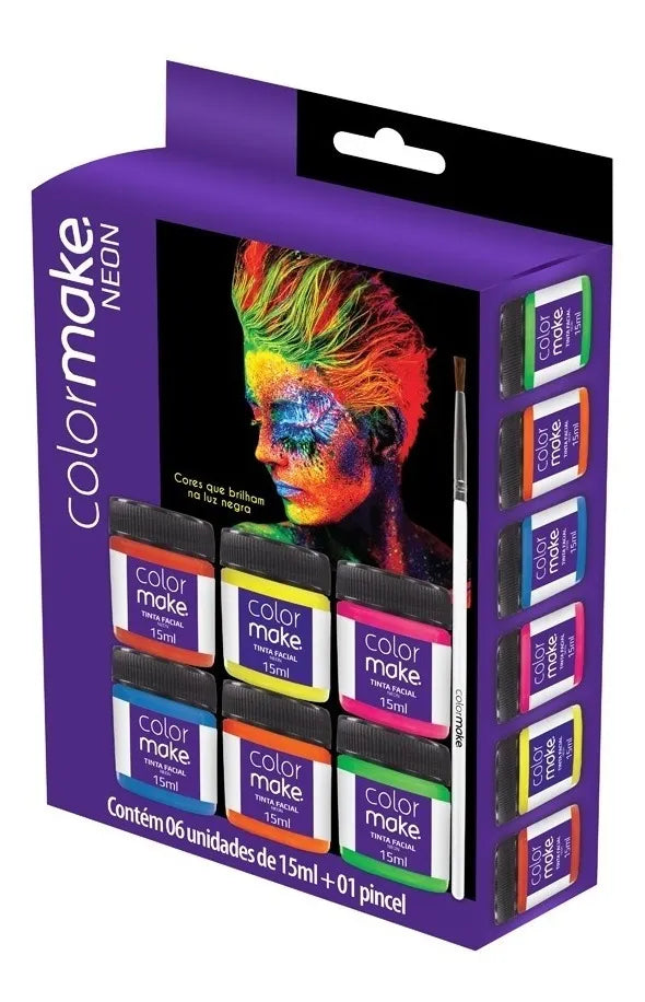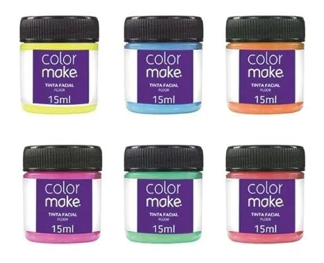 As Tintas Líquidas Neon Colormake são a base de água, possuem secagem rápida e total. Próprios para a pele, proporcionam segurança e são ideais para serem utilizadas em festas temáticas, fantasias, desfiles, apresentações de dança, por atores, estudantes, torcedores, maquiagens artística e eventos em geral, .