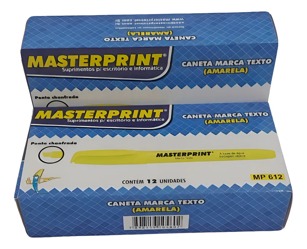 'Kit 12 Caneta Marca-texto Lumis Amarelo Secagem Rápida Flex' é um conjunto de 12 canetas marca-texto na cor amarela da Masterprint.