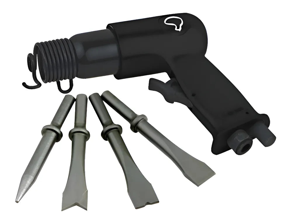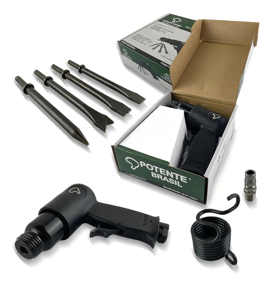 O Martelete Pneumático foi projetado para facilitar o trabalho de cortar, perfurar, lascar ou raspar superfícies metálicas. Utilizado amplamente na reparação automotiva.