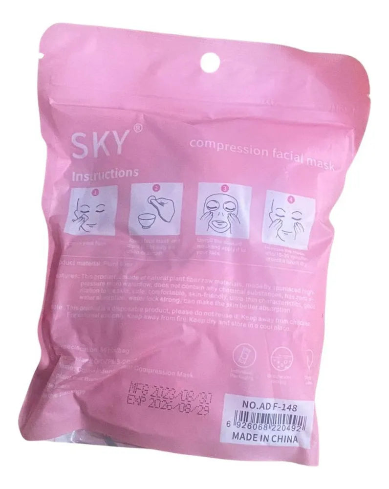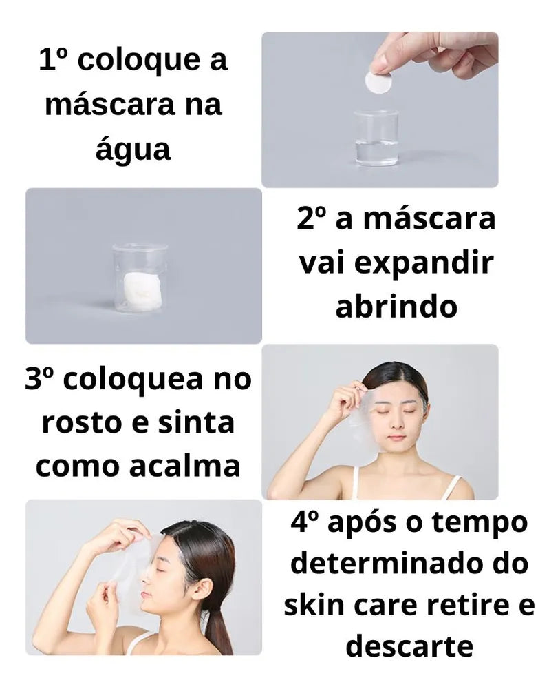 - Coloque a máscara desidratada na água, quando molhada, ela se expande e vira uma máscara pronta para uso.
