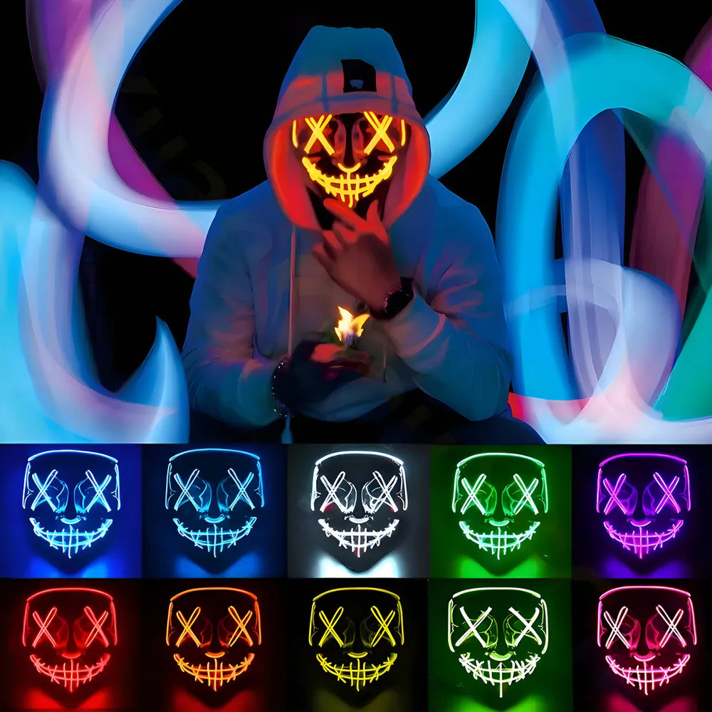 MÁSCARA DE LED NEON COM CONTROLE - 3 MODOS DE FUNCIONAMENTO