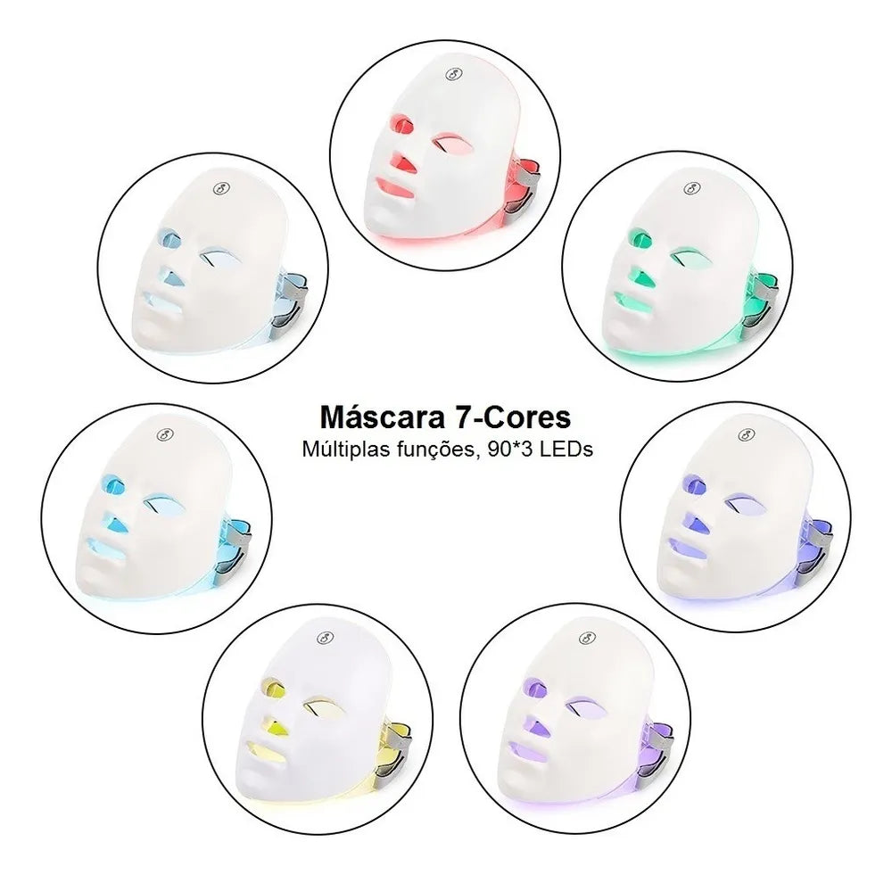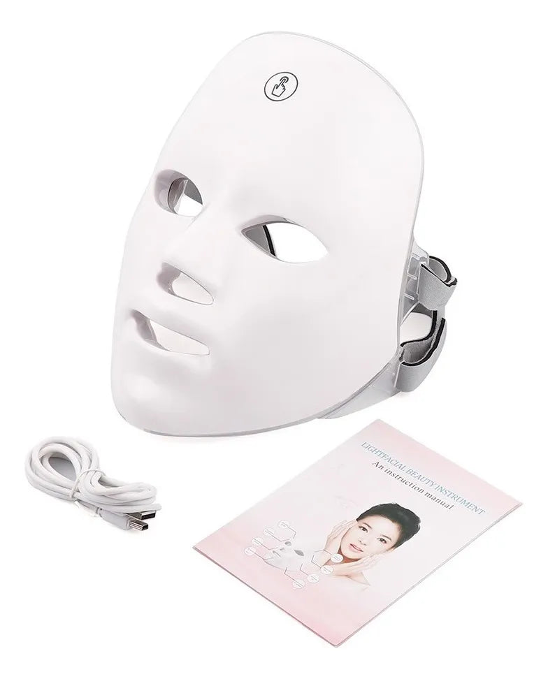 Achei muito boa a máscara! vem com um manual em inglês, mas bem prático e completo. Recomendo procurar uma versão em português ou um vídeo no youtube. Mas vou tentar ajudar vocês:. Basicamente a máscara funciona com um botão touch na área da testa. Segurando o botão por 3 segundos, a máscara emite um bipe duplo e liga na luz vermelha, que é para aumentar a atividade celular, promover a estimula ao de colágeno, clarear, suavizar marcas e diminuir rugas. Clicando uma vez, muda para a luz verde, que é para reduzir a oleosidade da pele do rosto. Clicando uma segunda vez, muda para a luz azul, que é para reduzir acne e inflamações da pele do rosto. Clicando uma terceira vez, muda para a luz lilás, que é um tratamento calmante contra acne e outras marcas na pele do rosto. Clicando uma quarta vez, muda para a luz amarela, que é para eliminar manchas, tratar processos de vermelhidão e faz uma desintoxicação linfática. Clicando uma quinta vez, muda para a luz turquesa, que promove o metabolismo e aumenta a energia das células. Clicando uma sexta vez, muda para a luz branca, que é para acelerar o metabolismo do tecido ativo, decompõe manchas e promove relaxamento da pele. Clicando uma sétima vez, as luzes se intercalam rapidamente e não entendi o propósito deste modo. Acredito que seja para testar as luzes. Clicando uma oitava vez, volta para o ciclo acima. Para desligar, em qualquer momento, segure o botão touch por 3 segundos e um bipe duplo será emitido e a máscara desliga.