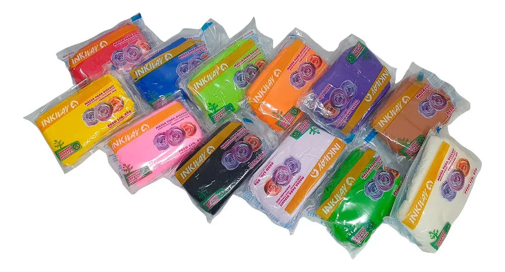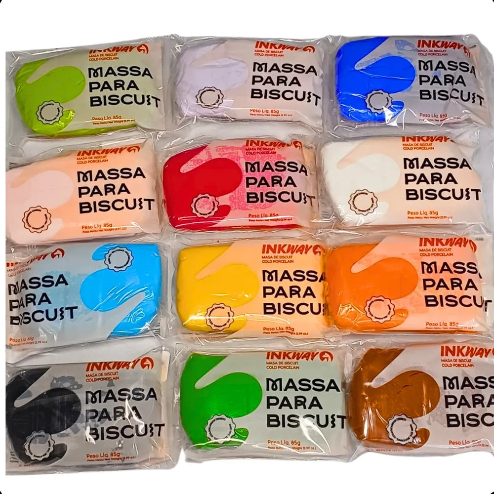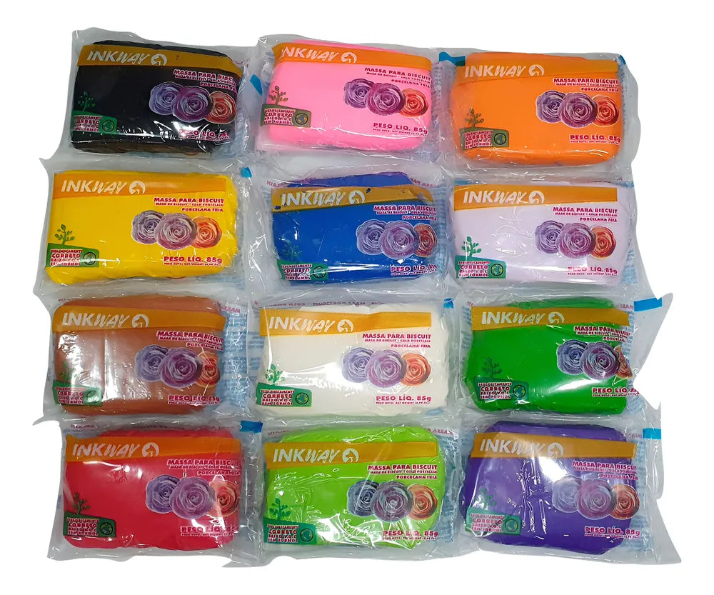 Massa para Biscuit Inkway Kit 12 Cores Pacotes de 85g