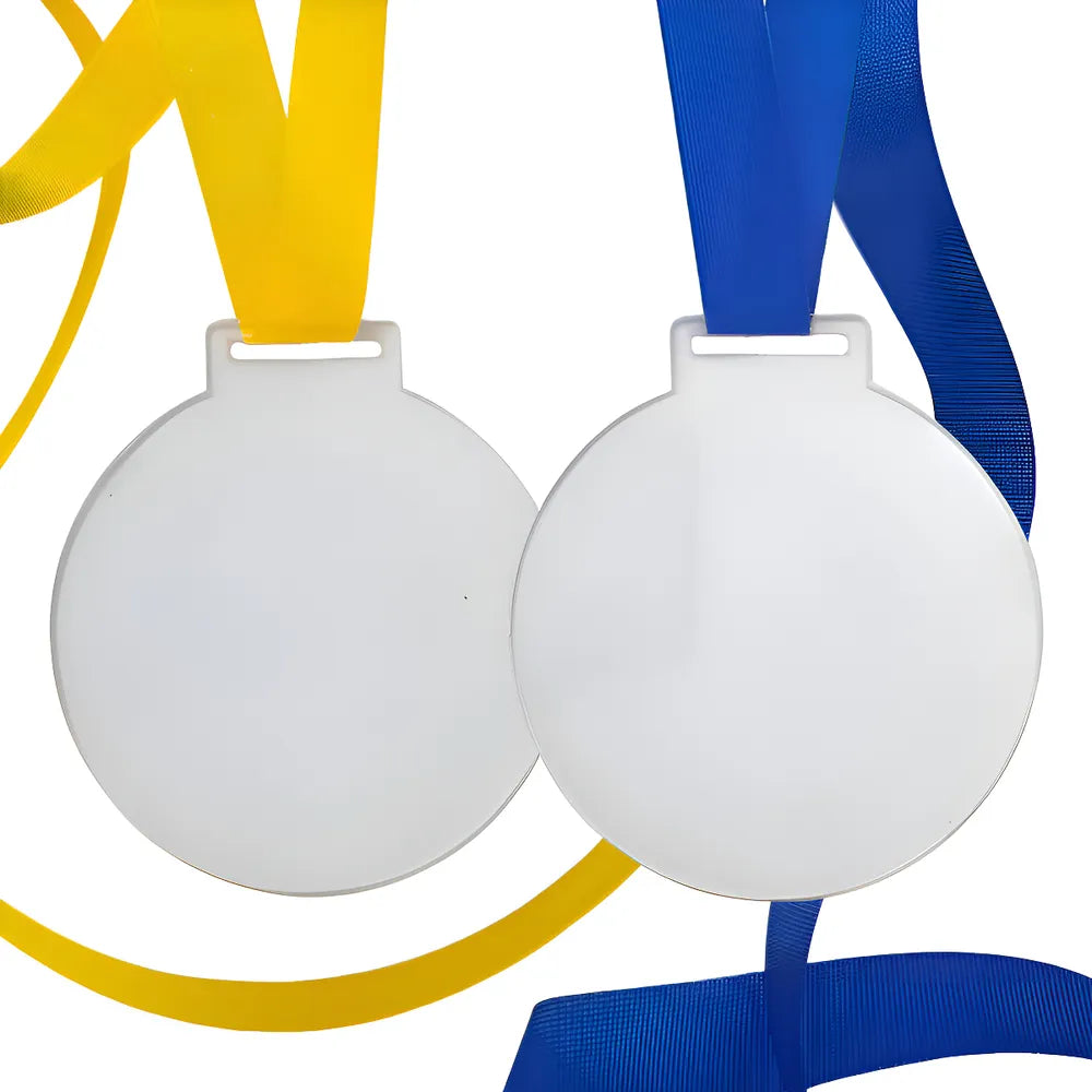 - Medalha redonda de 7 cm de diâmetro com passador para fita (passador com 0,28 cm x 1,6 cm).