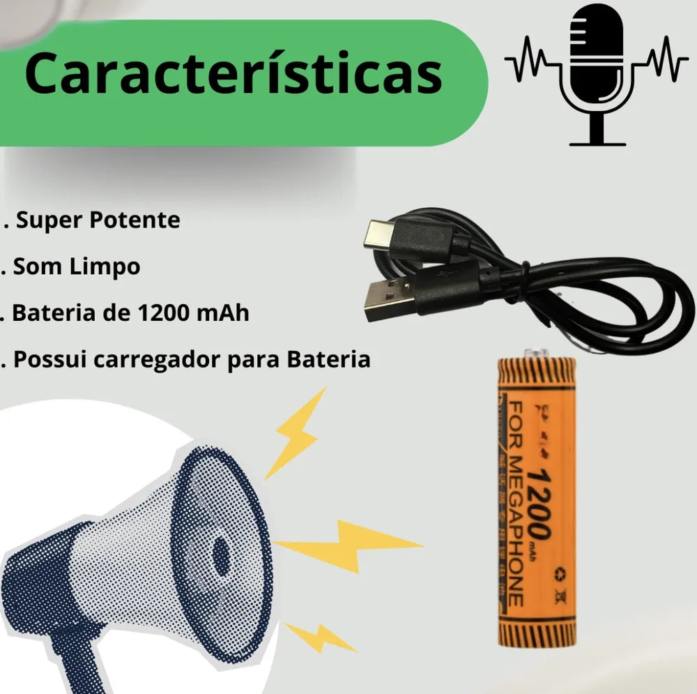 O Megafone Portátil Recarregável Sirene e Musical Gravador é perfeito para gravar o áudio que você quiser ou até mesmo uma música, possui uma super potência. É ótimo para chamar a atenção, passar instruções, dar dicas, muito usado em escolas, ruas, campos de futebol e quadras.