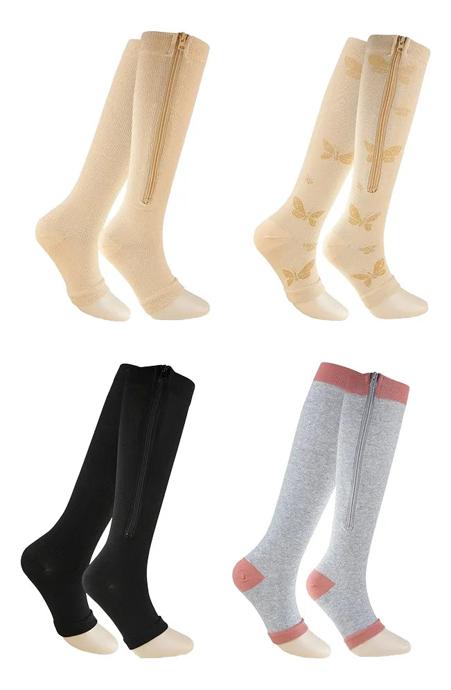 * Efeito terapêutico: Meias de compressão terapêuticas que estimulam a circulação sanguínea e ajudam a aliviar pernas cansadas e ou doloridas