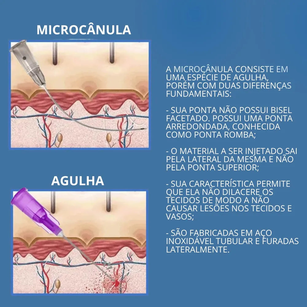 A microcânula consiste em uma espécie de agulha, porém com duas diferenças fundamentais: