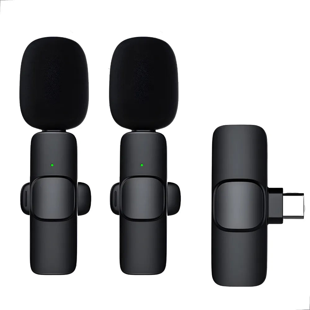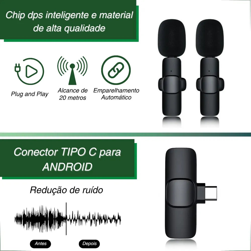 MICROFONE LAPELA DUPLO SEM FIO 2 EM 1 PLUG AND PLAY IPHONE COR ANDROID (TIPO C)