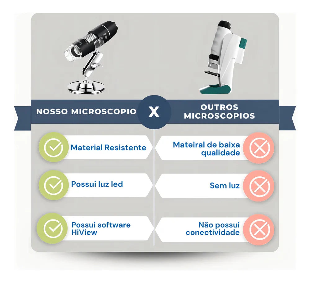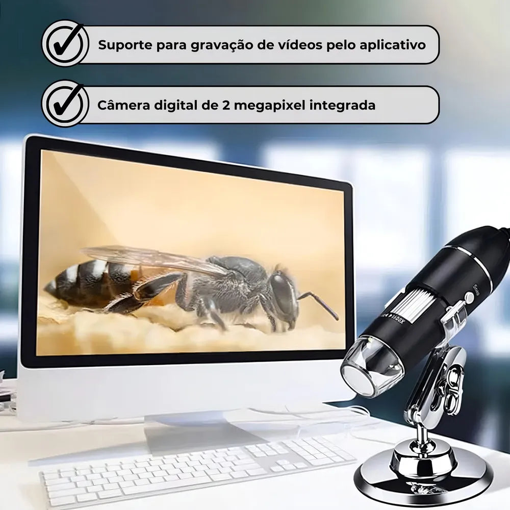 Facilidade de Uso e Conectividade: Com a conexão USB, é fácil conectar o microscópio a computadores, tablets e outros dispositivos. Isso permite visualizar e capturar imagens e vídeos em tempo real, tornando o uso intuitivo e acessível, mesmo para iniciantes.