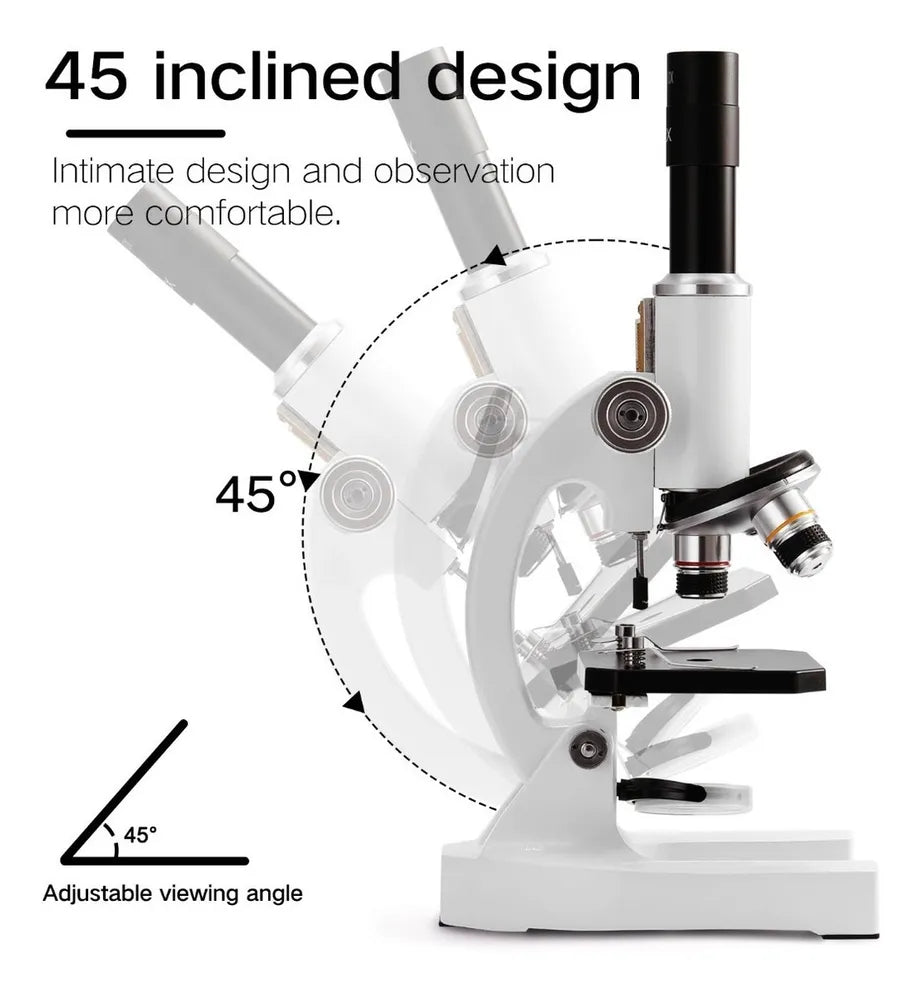O Microscópio Monocular Biológico Profissional 64x A 2400x possui uma luz de preenchimento que ajuda a iluminar o espécime e tornar a observação mais clara. A luz é fácil de instalar e economiza energia.