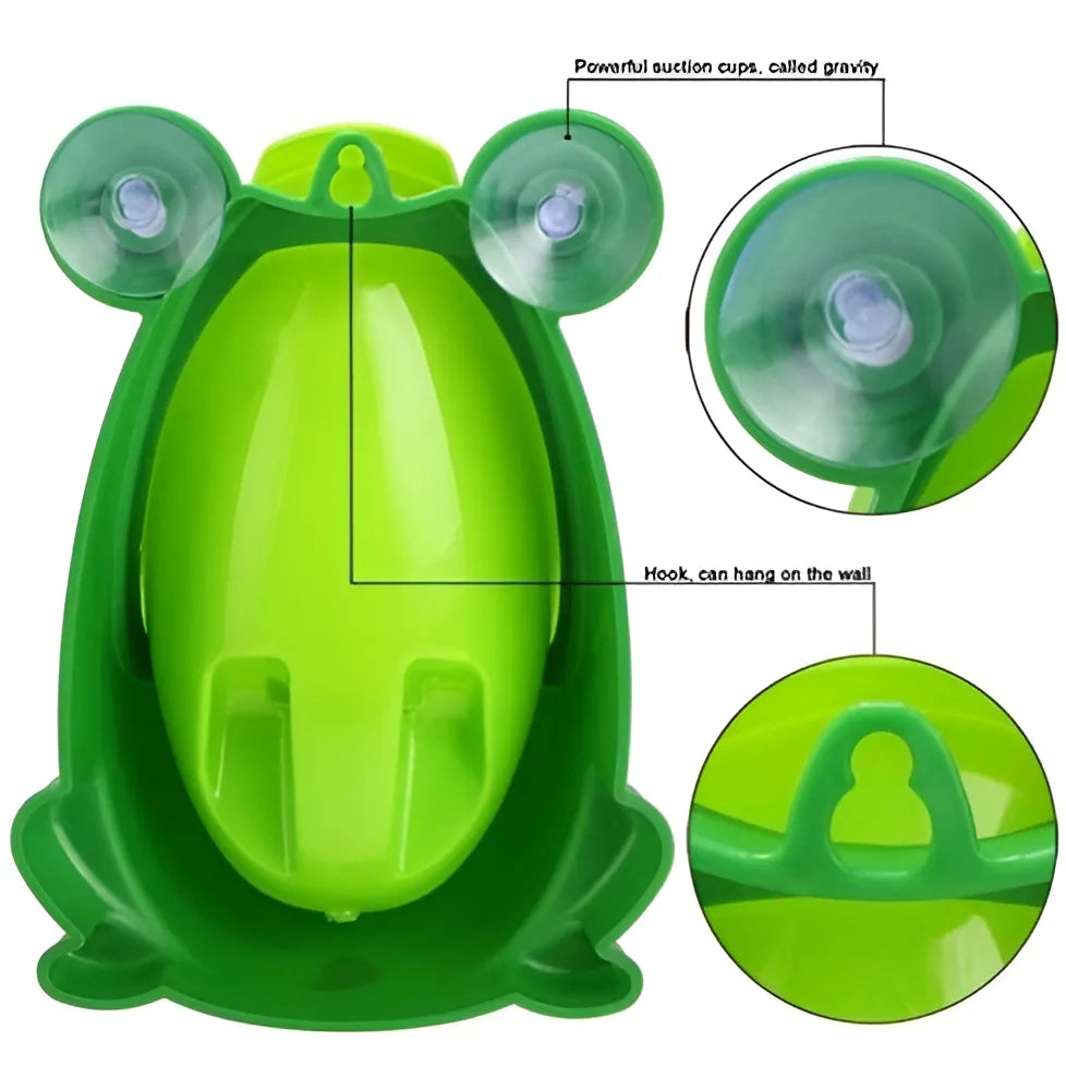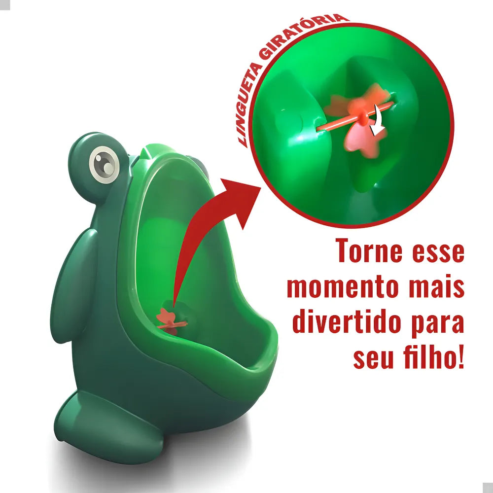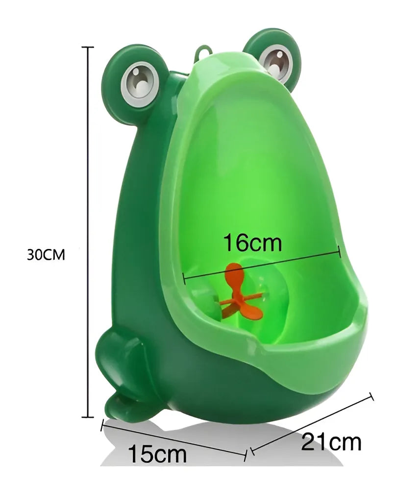 Fabricado em plástico resistente e de alta qualidade, este mictório é durável e fácil de limpar. Sua cor verde vibrante e o desenho de rã tornam o momento do xixi mais lúdico e menos intimidador para as crianças. Com uma altura de 29,5 cm, é ideal para crianças pequenas e pode ser facilmente ajustado à medida que crescem.