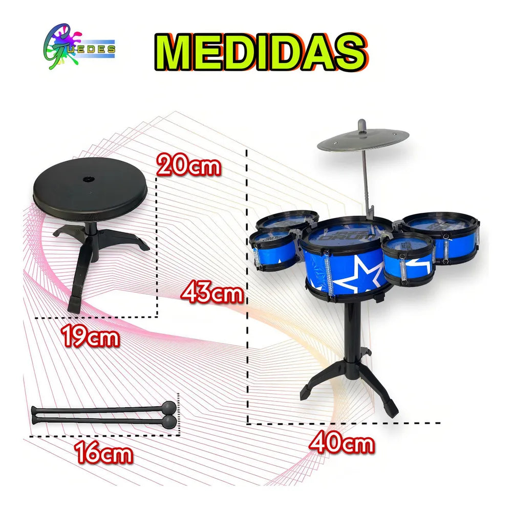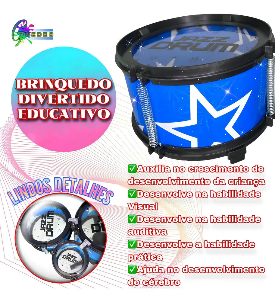 A Bateria Infantil Guedes é um excelente brinquedo para crianças, pois a criança desenvolve habilidade motora, ritmo e gosto pela música!