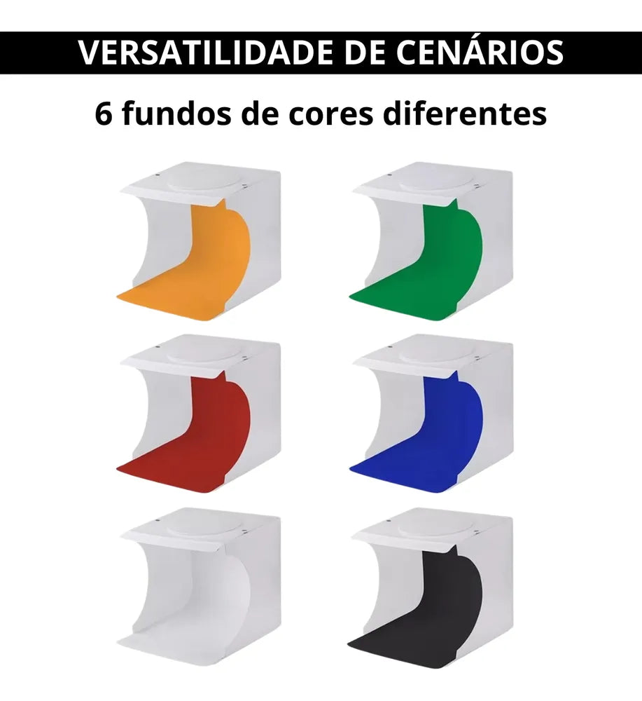 Se você quer elevar o nível das suas fotos de produtos ou criar conteúdo com aparência profissional sem sair de casa, o Mini Estúdio Fotográfico Portátil é seu novo aliado!