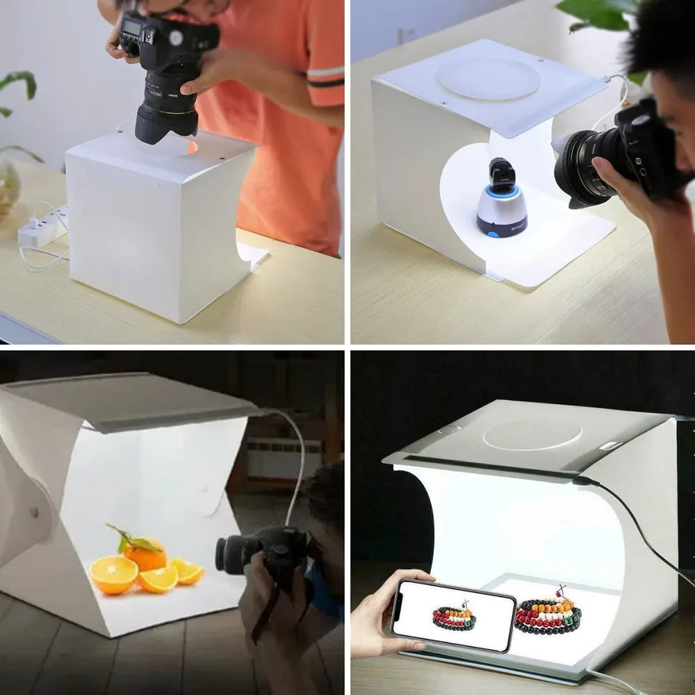 Compacto, dobrável e super prático, O MINI ESTUDIO PARA FOTOGRAFIA é ideal para fotógrafos, criadores de conteúdo, vendedores online, artistas e todos que desejam capturar imagens incríveis com qualidade de estúdio — em qualquer hora, em qualquer lugar!