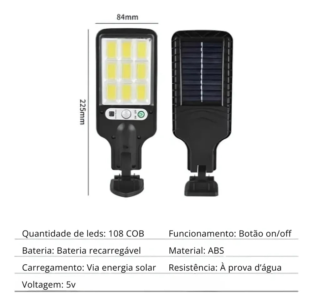 Esta é uma luminária solar com detector de movimento e acendimento automático, que funciona com energia solar e é à prova d’água. Ela é ideal para iluminar áreas externas, como caminhos, jardins, corredores, etc. Ela tem três modos de funcionamento, que podem ser selecionados pelo botão. Veja a seguir as características e o conteúdo do pacote deste produto.