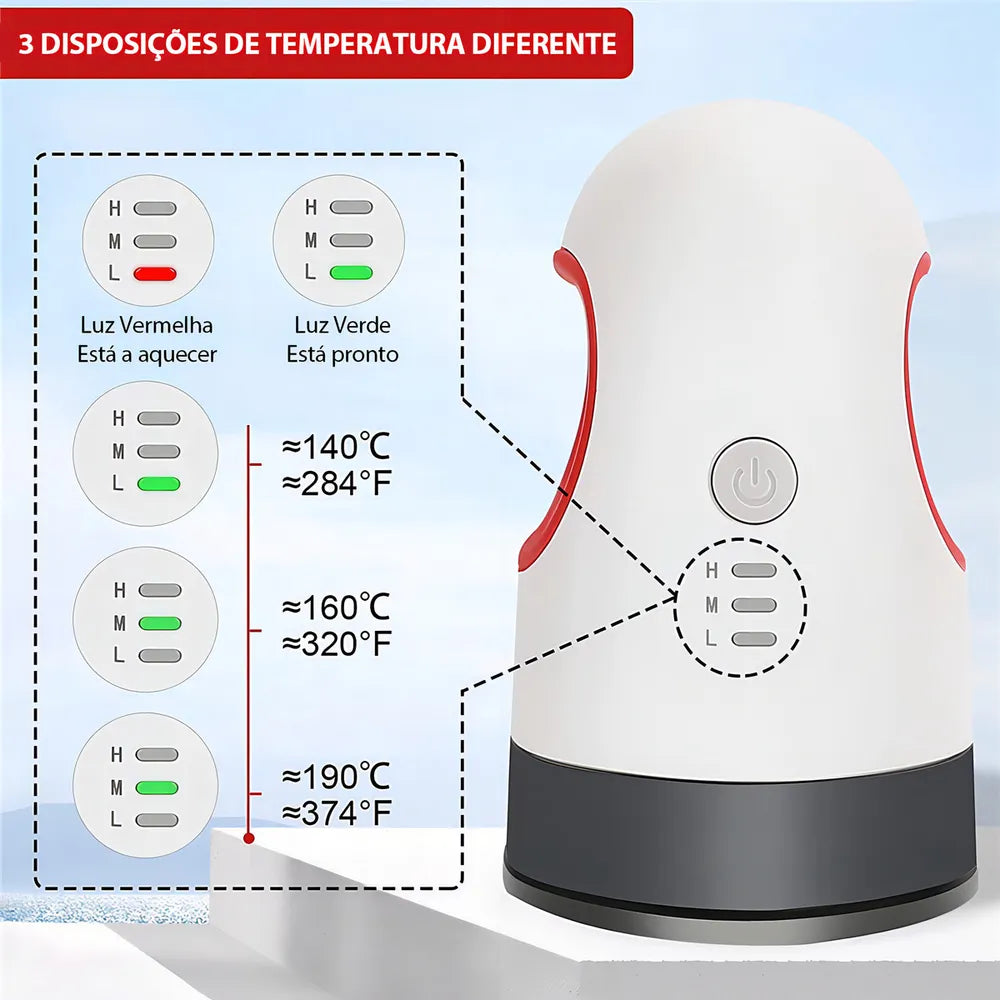 3 Níveis de temperatura: Baixa(140°C) /Média(160°C) /Alta(190°C)