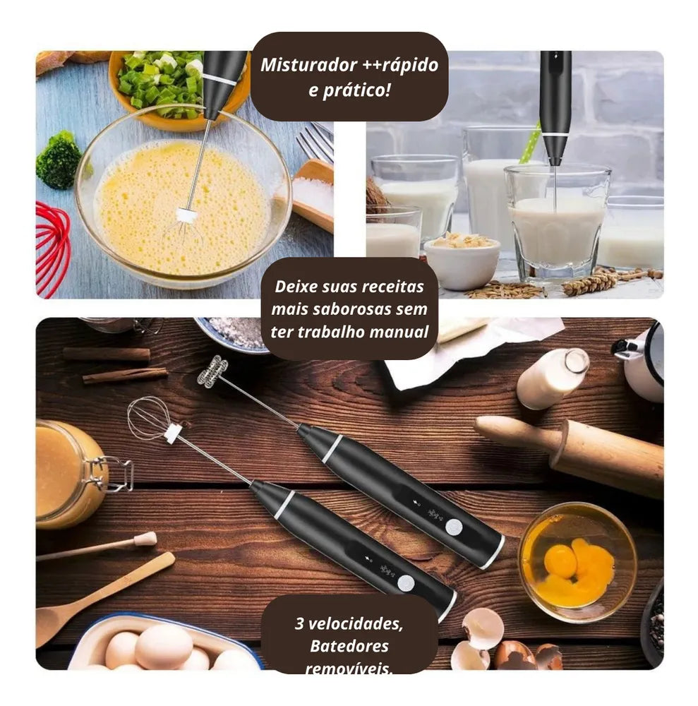 Este novo Misturador de Bebidas Portátil pode ser usado para fazer omelete, cremes, deixar o leite muito mais cremoso, misturar shakes e fazer deliciosas bebidas cremosas como cappuccino, café, chocolate quente, whey, milk shake de maneira muito mais rápida!