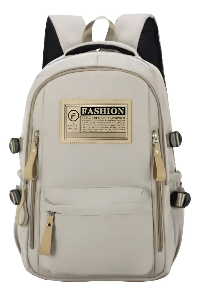 Bege/Caqui - Bolsa Mochila Reforçada, Grande Capacidade, Estilosa E Moderna, Ideal Para Uso Escolar, Universitário, Trabalho, Viagens, Casual, Comporta Notebooks, Alças Ajustáveis, Bolsos Laterais para Garrafas, Tecido Resistente e Semi Impermeável, Vários Bolsos e Compartimentos.