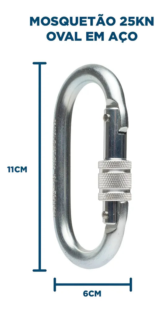 O Mosquetão Oval em Aço com Fechamento Rosca de 25 kN é a escolha ideal para profissionais que exigem segurança e resistência em suas atividades. Fabricado em aço carbono com acabamento bicromatizado, este mosquetão combina durabilidade e leveza, pesando apenas 172 gramas. Com uma resistência longitudinal de 25 kN, equivalente a 2.550 kgf, ele é perfeito para escalada, rapel, alpinismo e trabalhos em altura. A abertura do gatilho de 19 mm proporciona facilidade de uso, enquanto a trava de segurança por rosca garante a proteção necessária durante as operações. Certificado pela NBR 15837, este mosquetão é um equipamento novo e confiável, ideal para bombeiros, espeleólogos e praticantes de canyoning. Invista em segurança e qualidade com o Mosquetão Oval Aço, um produto que atende às mais rigorosas exigências do mercado.