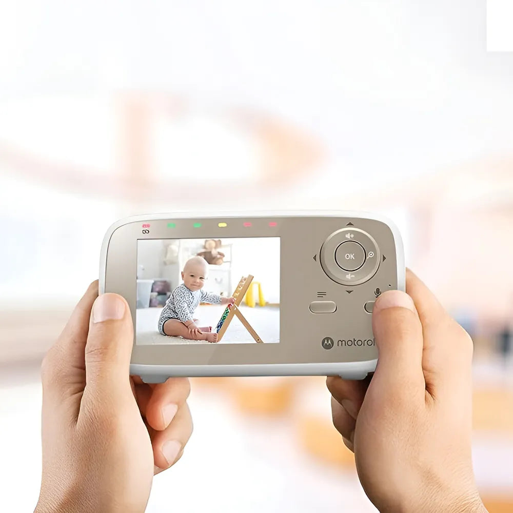 Com visão noturna infravermelha e comunicação bidirecional, permite que os pais falem com o bebê através do microfone integrado na tela, enquanto o som é emitido pelo alto-falante embutido na câmera. A temperatura ambiente é exibida na tela, e o microfone de alta sensibilidade permite escutar qualquer som emitido pelo bebê.