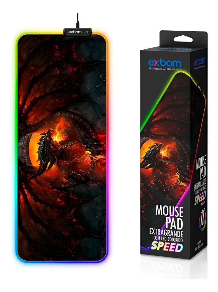 'Mousepad Gamer Grande Com Led RGB 11 cores 80x30cm - Dragão