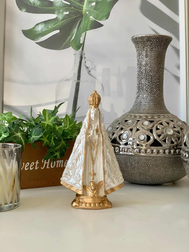 NOSSA SENHORA APARECIDA COM 15 CM DE ALTURA E MANTO BORDADO