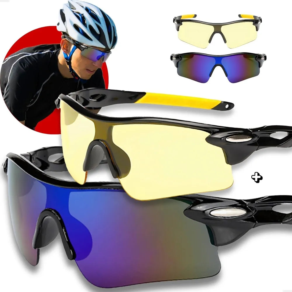 O KIT CONTÉM 2 ÓCULOS: 1 ÓCULOS DIURNO ESPELHADO E 1 ÓCULOS NOTURNO LENTE TRANSPARENTE OU AMARELA.