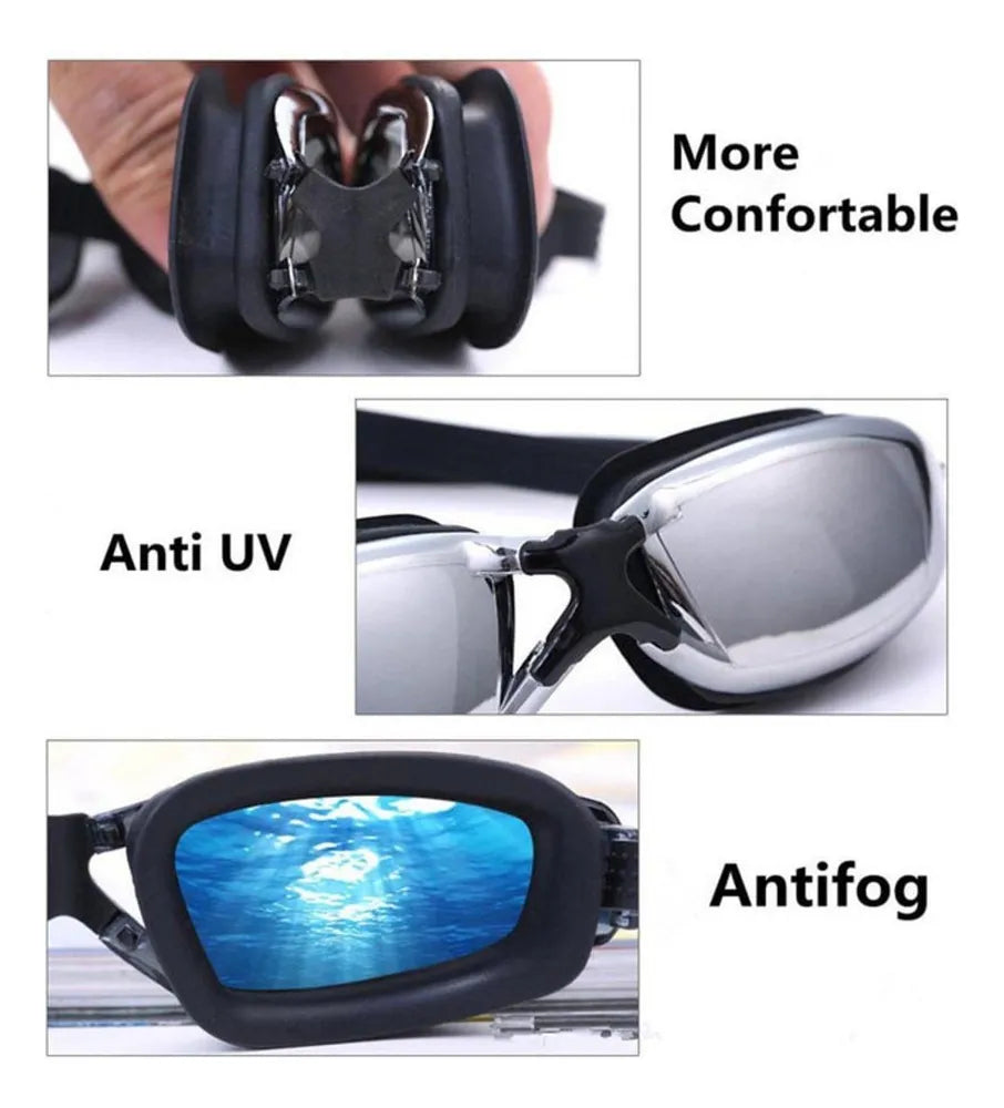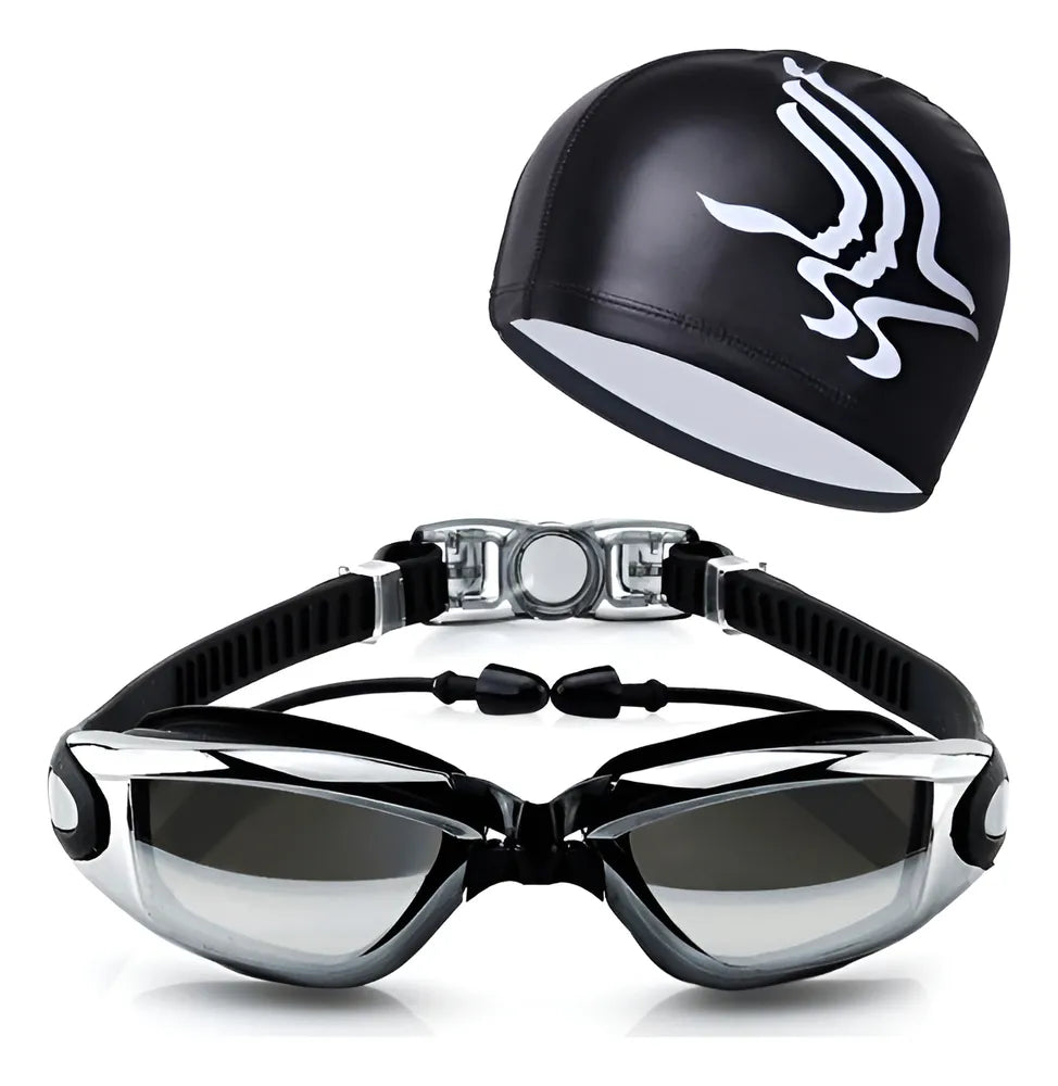 ÓCULOS DE NATAÇÃO MERGULHO PISCINA ADULTO PROFISSIONAL COM LENTES TRANSPARENTES + TOUCA