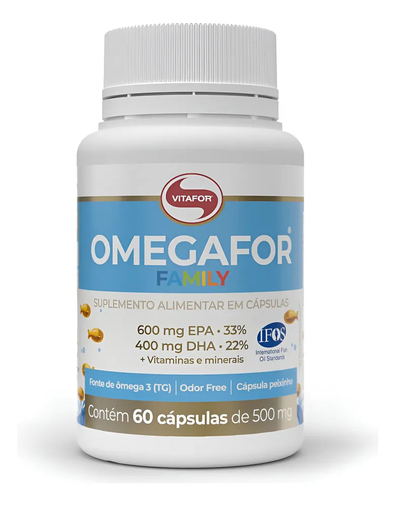 Omegafor Family ® Vitafor é um suplemento alimentar à base de óleo de peixe (fonte de Ômega 3- TG) enriquecido com vitaminas e o mineral selênio, que tem ação antioxidante.