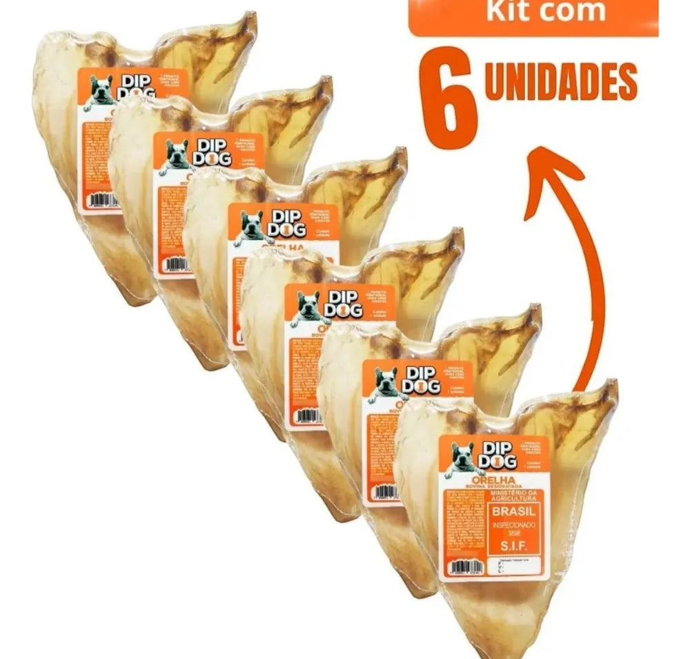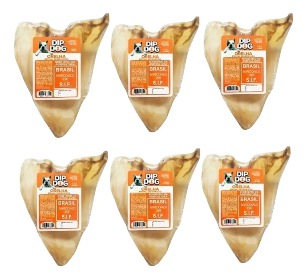 CONJUNTO DE 06 ORELHAS BOVINAS DESIDRATADAS