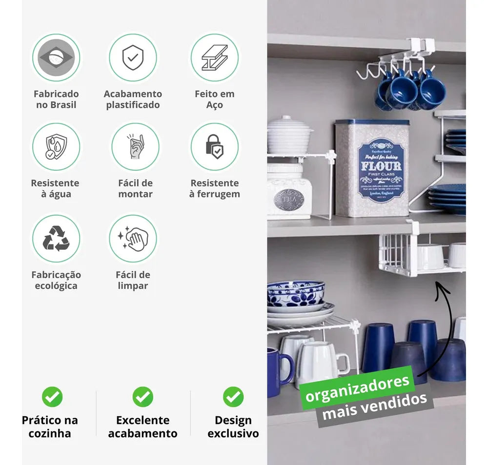Sabe aquela frustração de abrir o armário da cozinha e não encontrar o que procura? Ou ver xícaras e pratos empilhados de maneira desordenada? Temos a solução perfeita para você! Com nosso kit de organizadores, você transformará o caos em ordem em um piscar de olhos. E o melhor? Temos uma oferta exclusiva: na compra do kit, você recebe um desconto especial. Mas corre, a oferta é por tempo limitado!