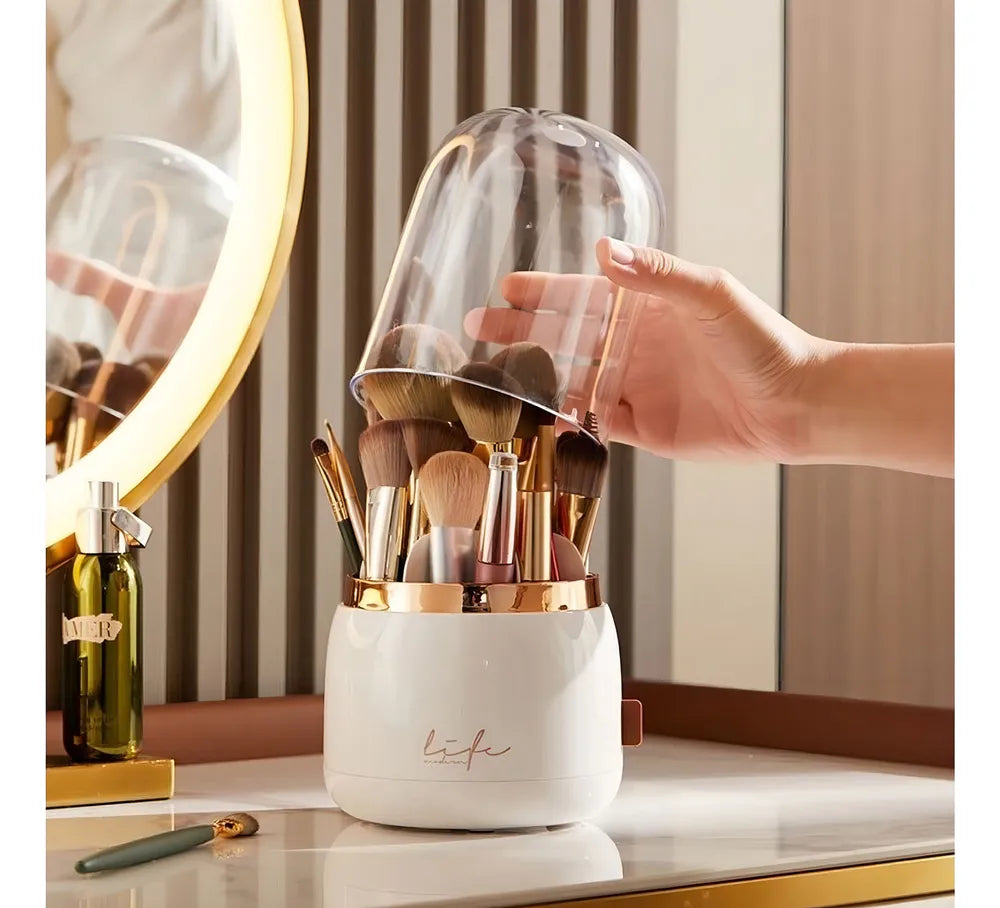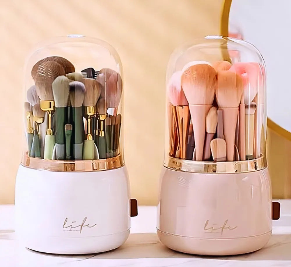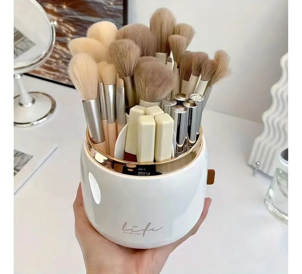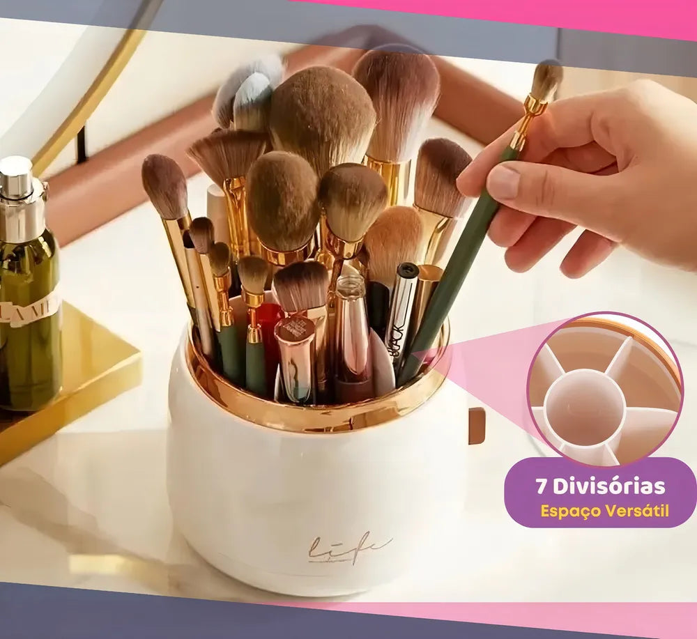 Funcionalidade Giratória: O organizador gira 360 graus, proporcionando acesso fácil a todos os seus pincéis. Encontre rapidamente o que precisa com um simples movimento.