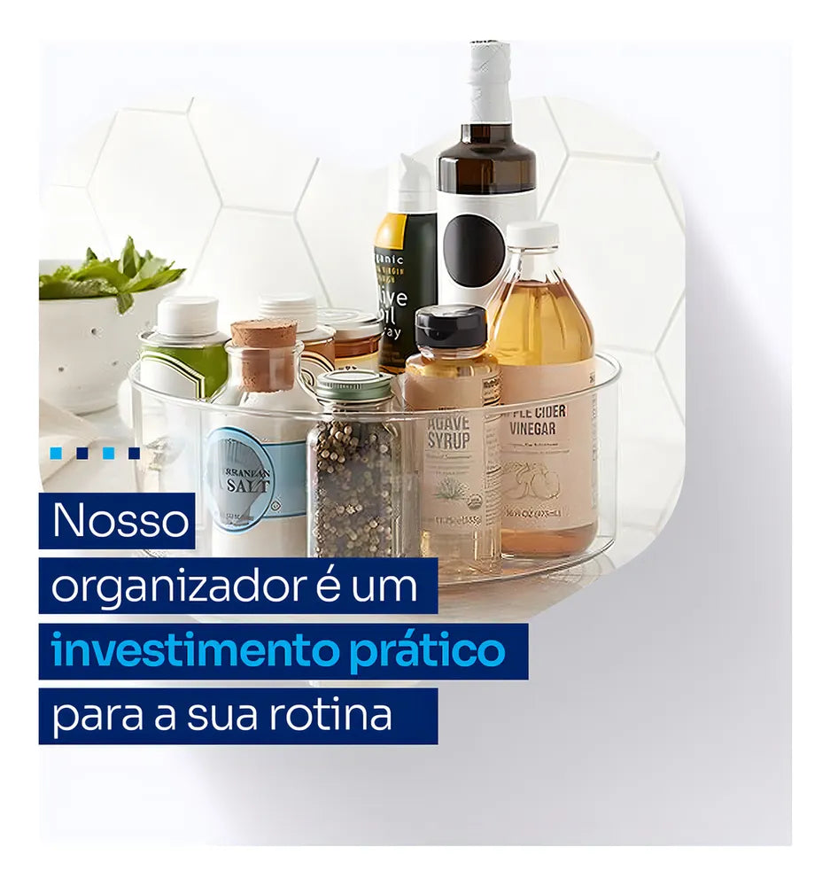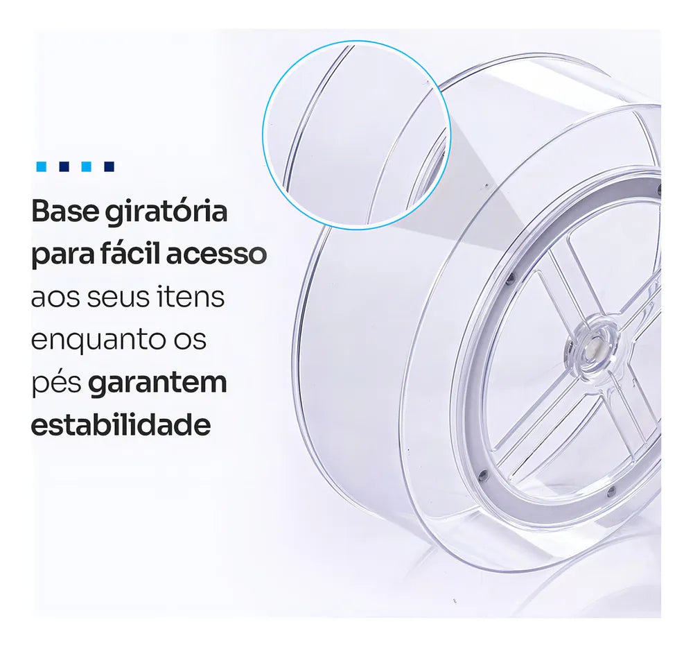 Este organizador giratório em acrílico é ideal para organizar todos os ambientes da casa. Com base giratória de 360 graus, facilita a organização e o acesso aos itens armazenados. Permite armazenar e organizar itens de diversos tamanhos, como maquiagem, remédios, acessórios e mais. Fabricado em acrílico, é resistente, prático e com design que se encaixa em qualquer decoração. Além disso, é fácil de limpar.