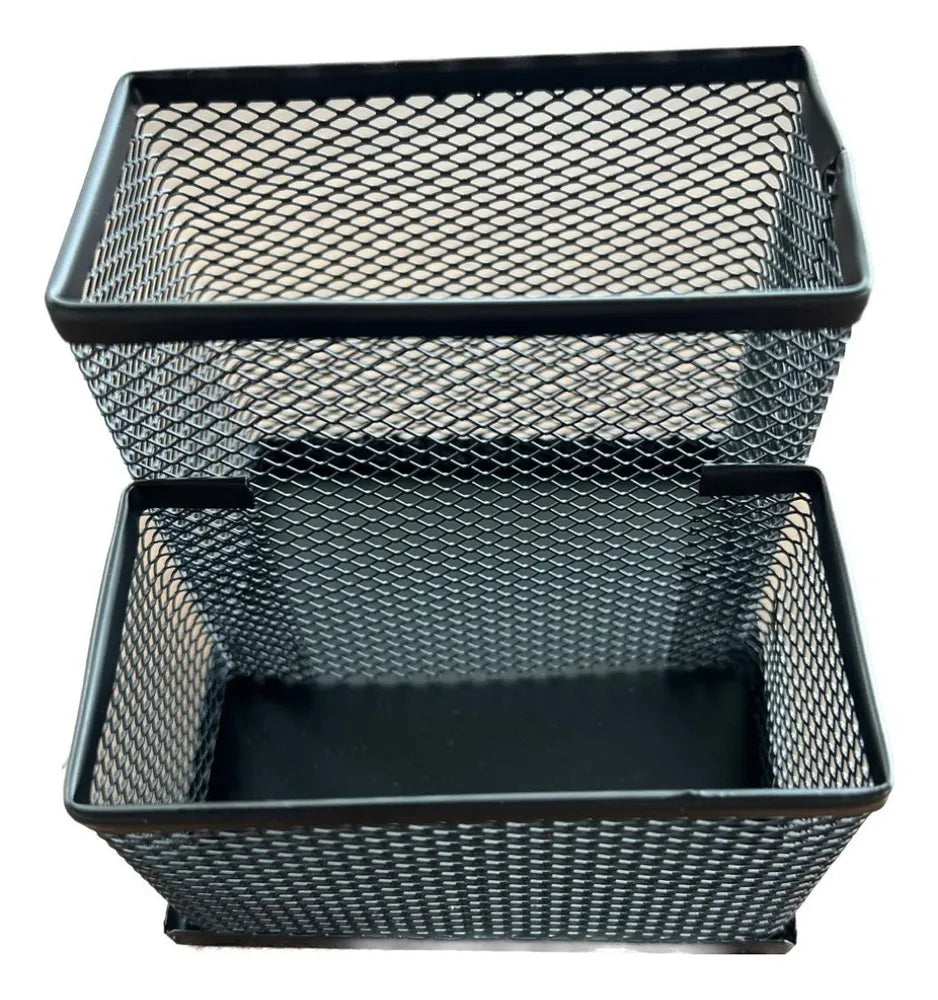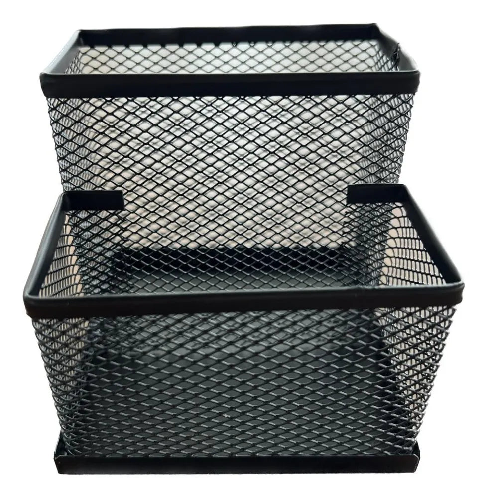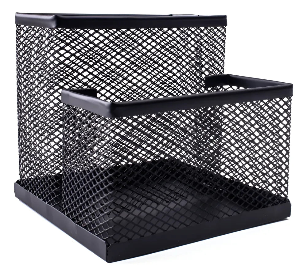 Fabricado em metal aramado com 2 divisórias e tamanho (C x L x A) 10 cm x 10 cm x 10 cm.