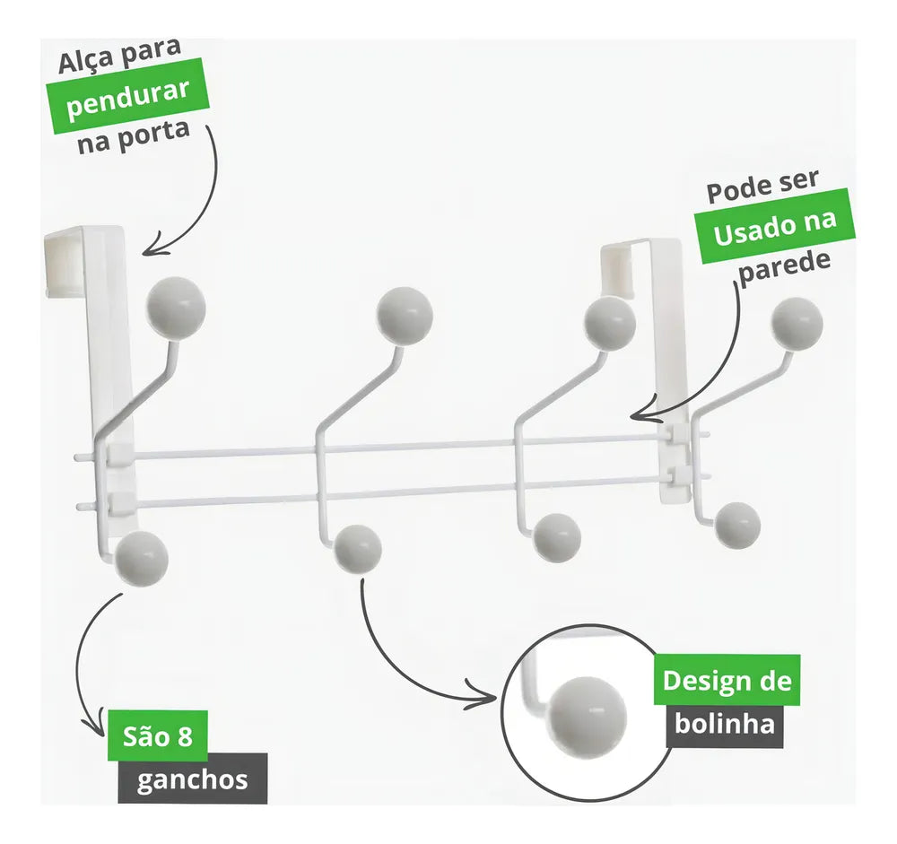 Gancho de Parede e Porta para Pendurar Roupas e Toalhas com 8 Ganchos!